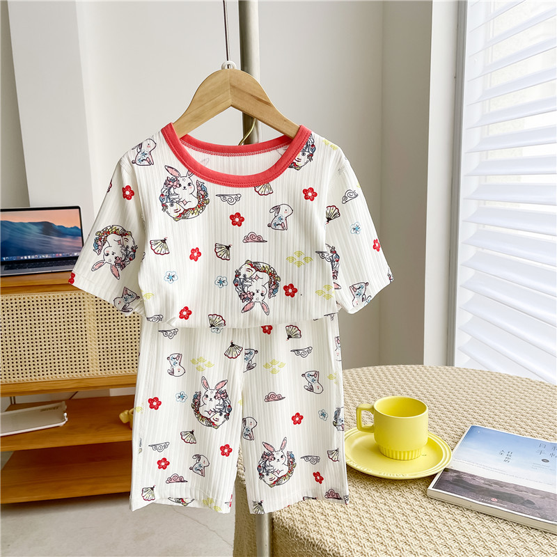 20分鐘前夏季男女童七分袖空調服休閒冰感睡衣套裝 - 【兒童冰絲空調家居服】1入組-NT$980