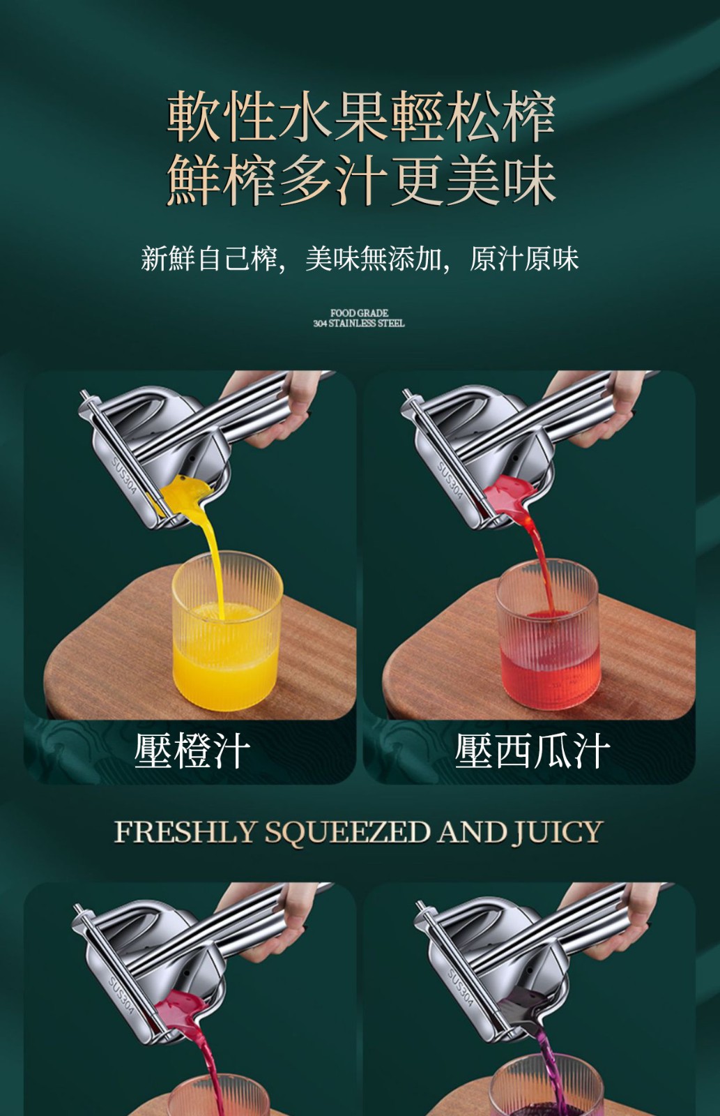 20分鐘前想喝鮮榨果汁宮又怕麻煩?304不鏽鋼手動榨汁汁來助力! 食品級材質安全耐用,鬆分離果渣與果汁,西瓜、石榴、柳丁随心榨!小巧便攜不佔地,手動按壓超解壓,新鮮健康零添加,讓你隨時隨地享原汁原味~ - 【限時下殺】買一送一 2入組NT$1298