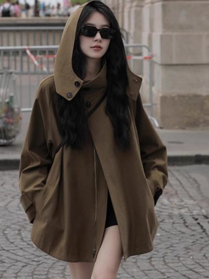 20分鐘前【現貨爆款】秋冬新款 斗篷風衣外套 美拉德英倫風 高品質連帽工裝 - 優惠價一入組NT$1398