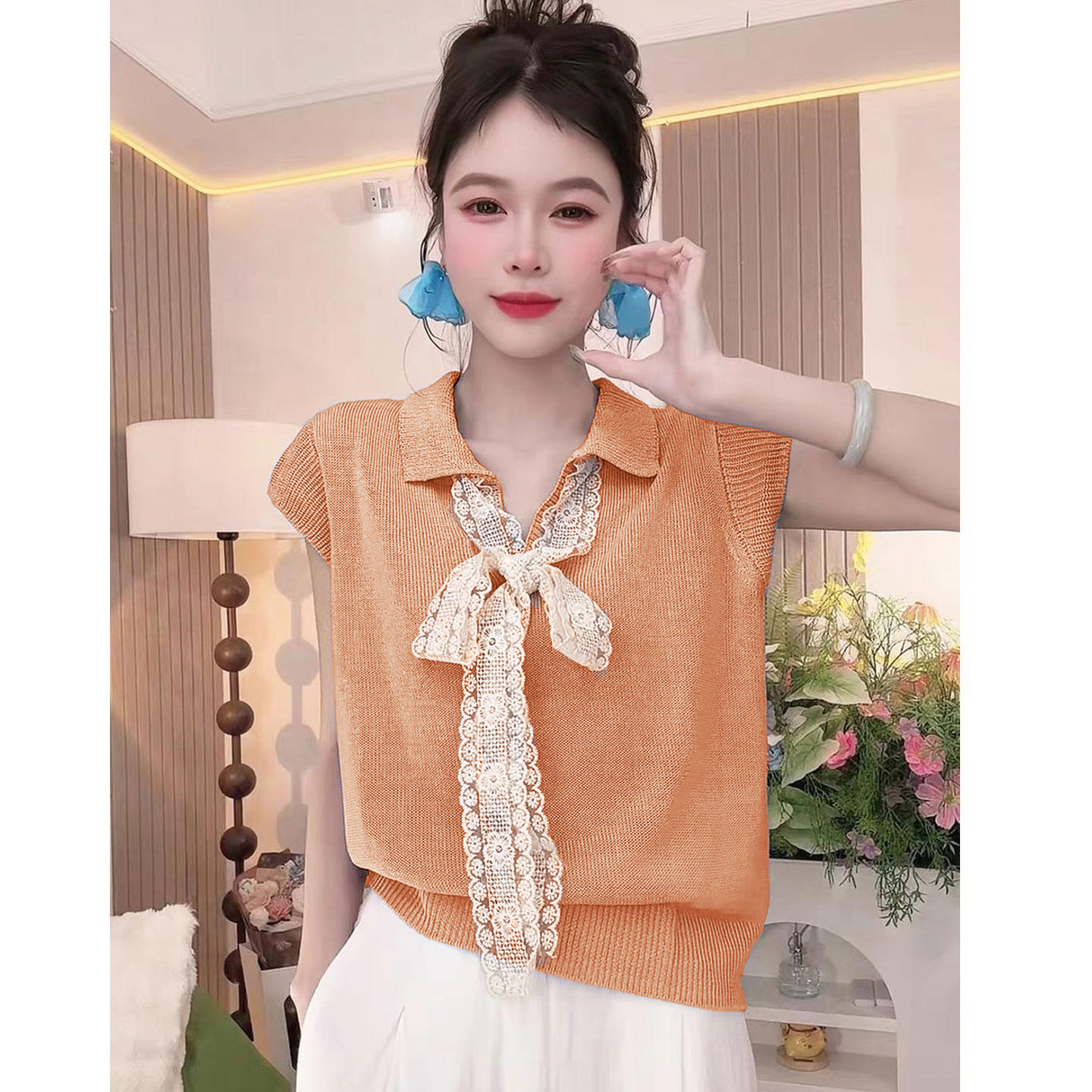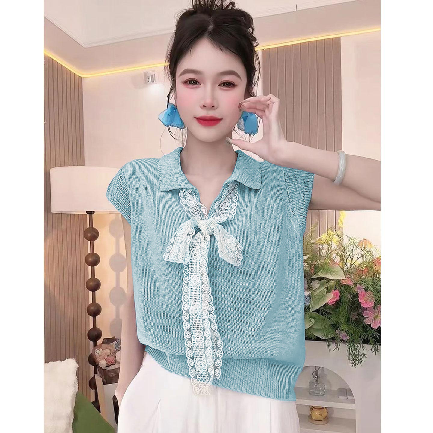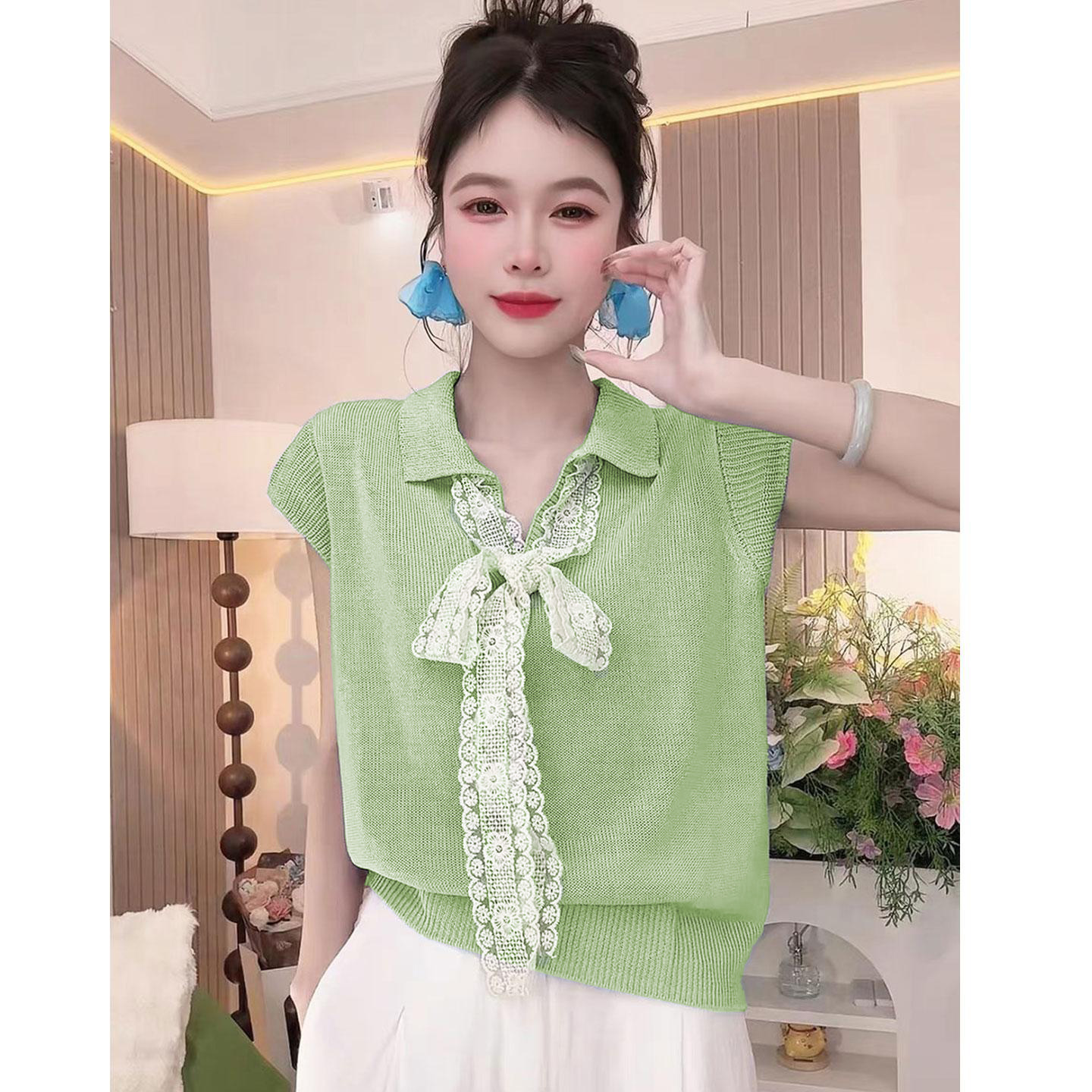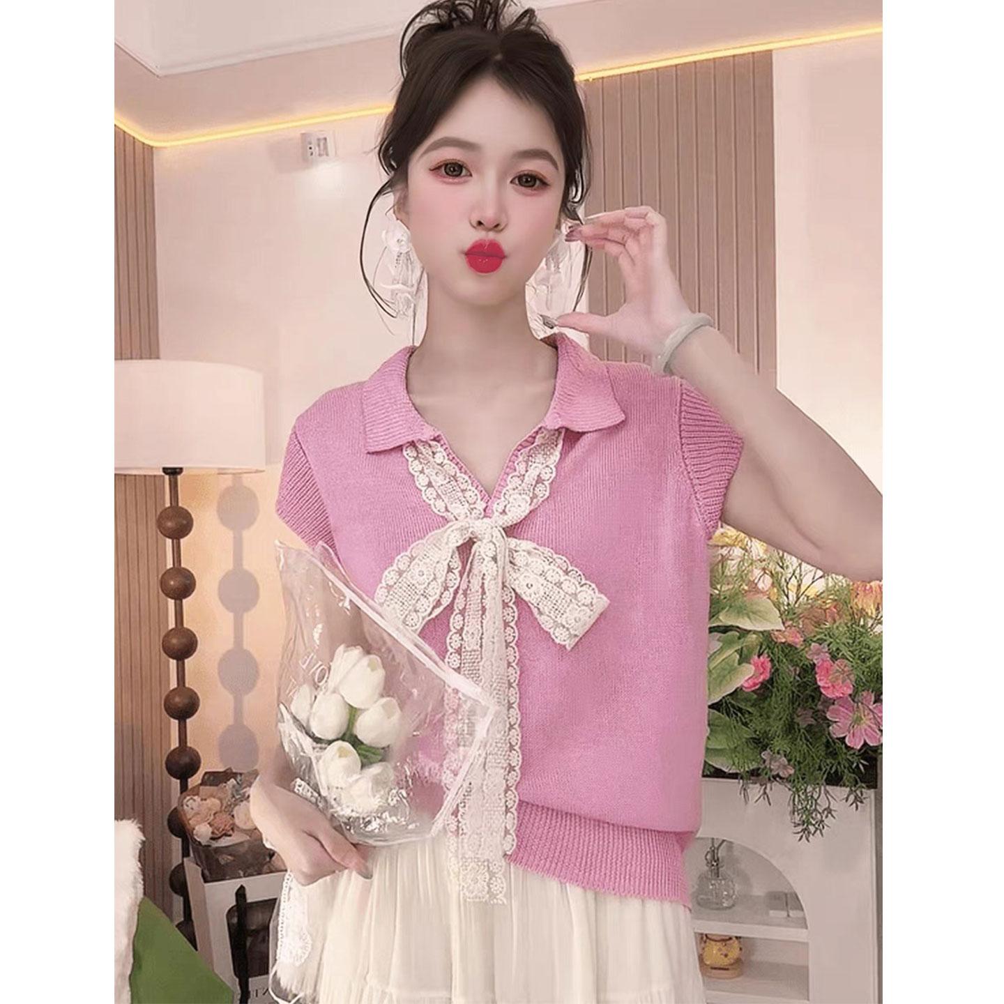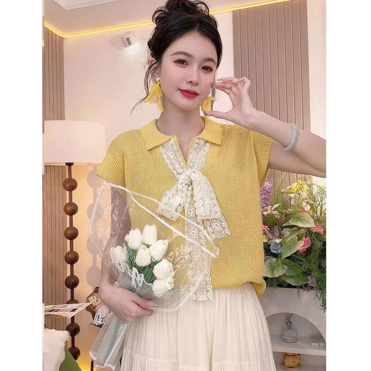 5分鐘前【台灣出貨】火爆折扣中!夏裝新款蕾絲拼接蝴蝶結冰絲針織衫 - 【三入組】任選3件 NT$ 1080