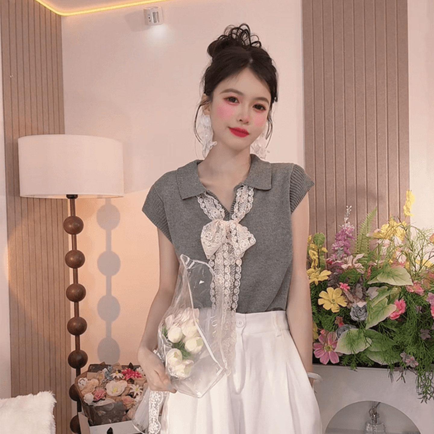 15分鐘前【台灣出貨】火爆折扣中!夏裝新款蕾絲拼接蝴蝶結冰絲針織衫 - 【三入組】任選3件 NT$ 1080