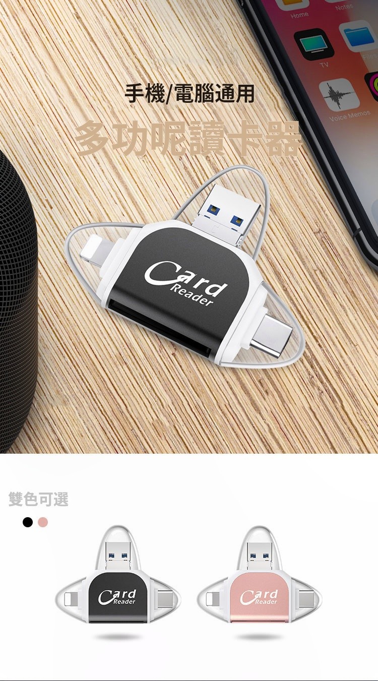 5分鐘前多功能讀卡器適用於蘋果安卓手機 - 【團購價】四合一多功能讀卡機 二入組 NT$1088